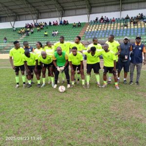 L’équipe de Comilog (1) et une action de leur match cauchemar contre MIA (2) 1-2.