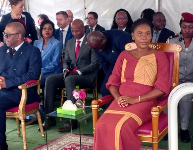 Une vue de la Première Dame, avec à ses côtés les membres du gouvernement conduits par le Vice-président du gouvernement, Hugues Alexandre Barro Chambrier.