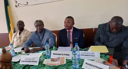 Joseph Moutandou-Mboumba, le maire de Fougamou (1), les membres du Bureau des travaux de la Session budgétaire (2).