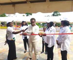 L’invitée surprise, Victoire Lasseny Duboze, procédant à la coupure du ruban symbolique.