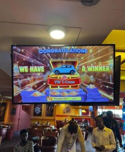 Après une jeune dame le 09 avril dernier 2025 qui, avec 500 FCFA de mise (moins d’un euro), avait remporté le premier véhicule du même type en jeu ;  c’est au tour d’un Monsieur  ce 26 novembre, avec 1000 FCFA pour faire tourner la machine à sous repart, de repartir avec la deuxième Volkswagen T-Cross de  27 millions de  FCFA (plus de 41 000 Euros).