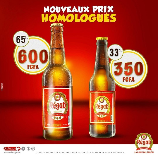 La Société des boissons rafraîchissantes du Gabon (SOBRAGA) informe ses consommateurs qu’elle procède à un réajustement tarifaire ciblé sur les formats Régab 65 cl et 33 cl. Le prix de vente homologué de la bouteille 65cl est fixé à 600 FCFA, et celui de la bouteille 33cl est abaissé à 350 FCFA.
