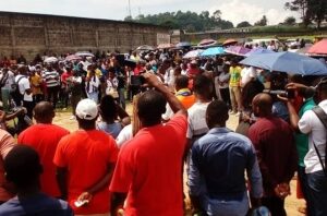Les enseignants lors de leur assemblée générale du samedi 24 janvier au stade de Sibang.