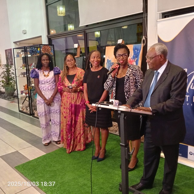 C’est par ces termes forts que Sylvestre Ratanga, diplomate, ancien ambassadeur du Gabon en Allemagne, s’est exprimé vendredi 3 octobre dernier à Mina hôtel de la Sablière (ex- Omono en face de l’Ambassade des Etats-Unis d’Amérique), pour présenter l’artiste peintre-sculpteur Michelle Nze, dans discours inaugural du vernissage. Une nouvelle exposition-vente des produits de cette artiste internationale gabonaise, Michelle, un an après la précédente. Elle est cette fois accompagnée de deux artistes plasticiennes: Mexhilus YMC et Ketsia,